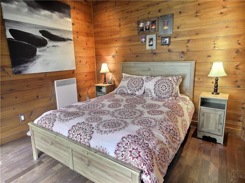 Au chalet Sérénity, l’hiver se vit au ralenti, avec le lac Bruyère comme décor. Dès l’arrivée, on comprend pourquoi on vient ici : de grandes fenêtres qui laissent entrer la lumière et offrent une vue panoramique sur un paysage apaisant. C’est le genre d’endroit où on décroche naturellement — un café dans les mains, le regard qui se perd au loin, et cette impression que tout devient plus simple.