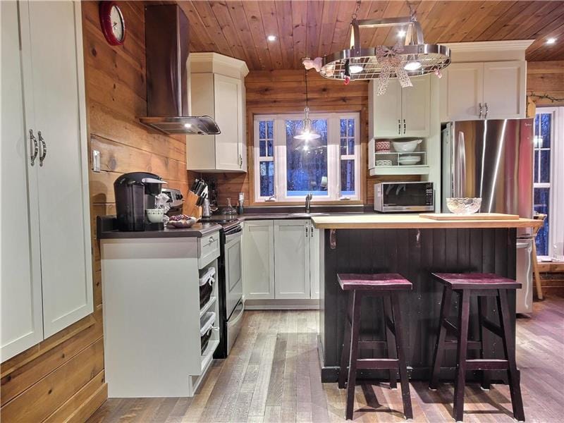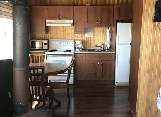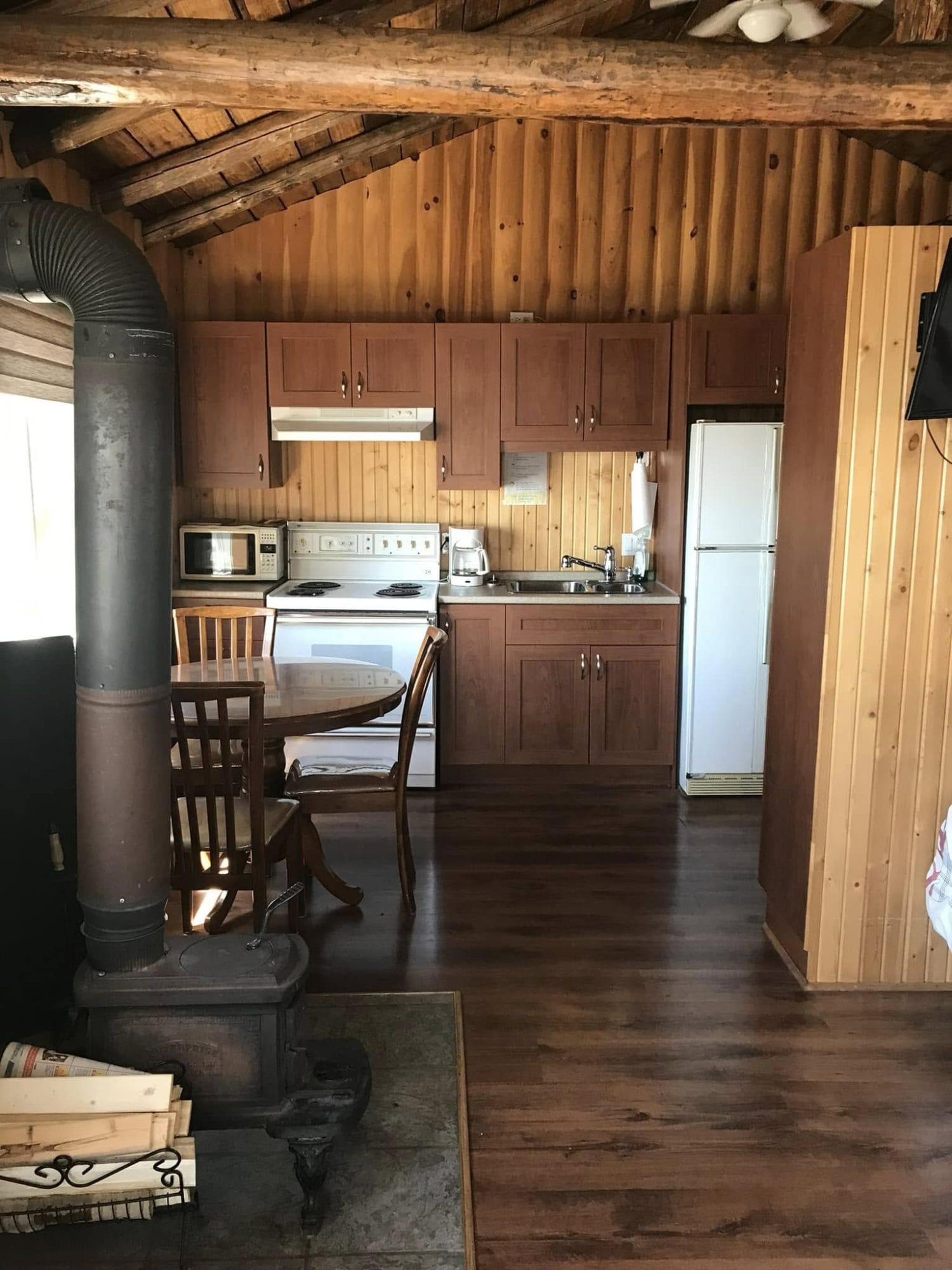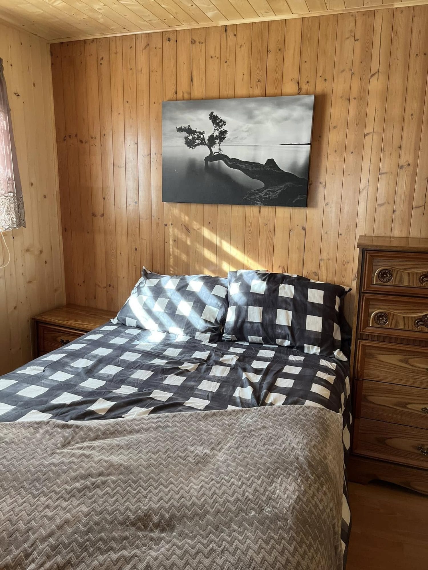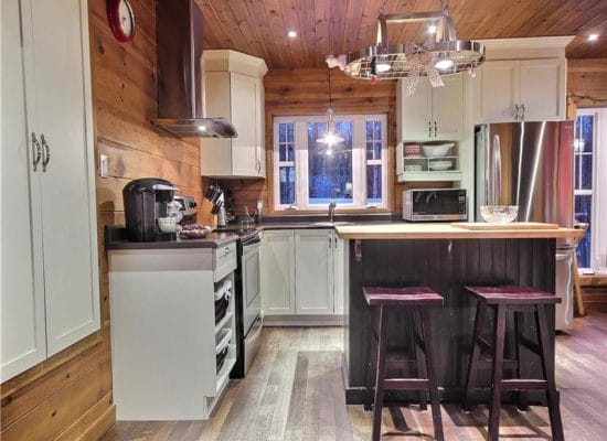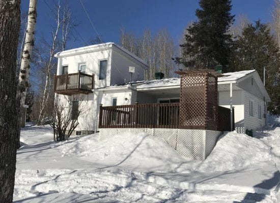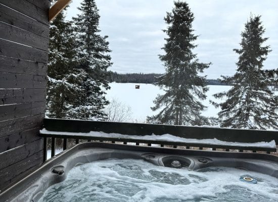 Depuis le balcon, la vue sur la rivière Kinojévis ajoute une dimension contemplative au séjour : levers de soleil, silence hivernal, et soirées propices à l’observation des étoiles. L’hiver, c’est une adresse parfaite si vous aimez l’idée d’un refuge simple, enveloppant, où l’on alterne naturellement entre dehors et dedans.