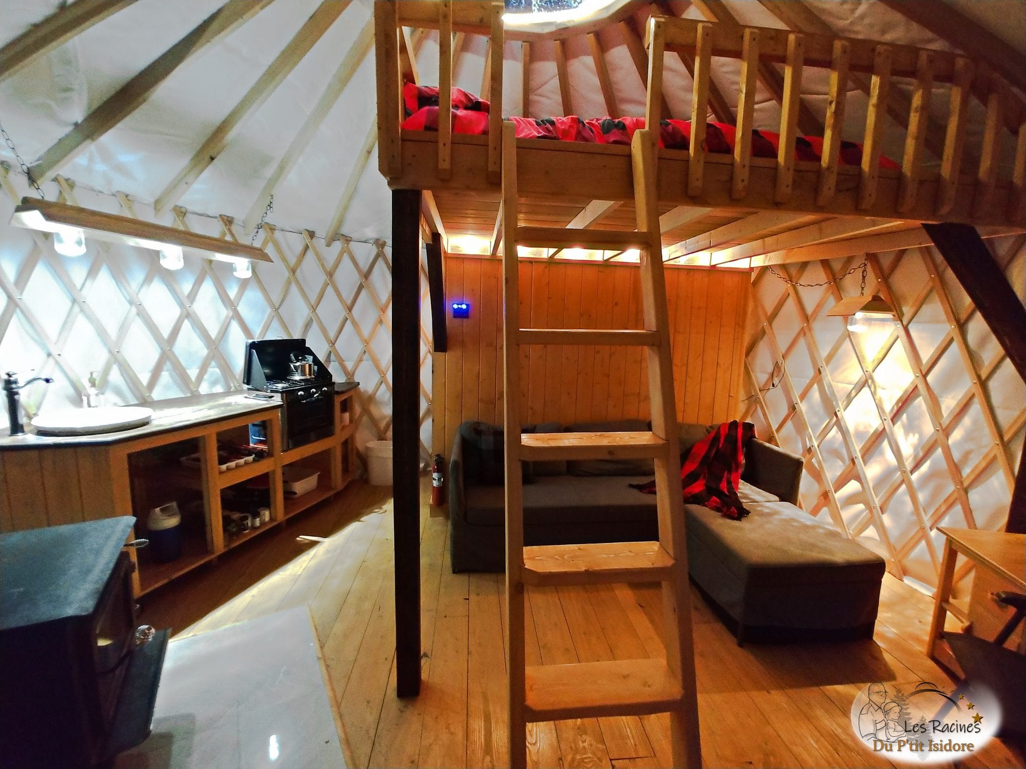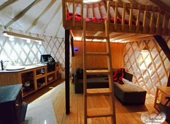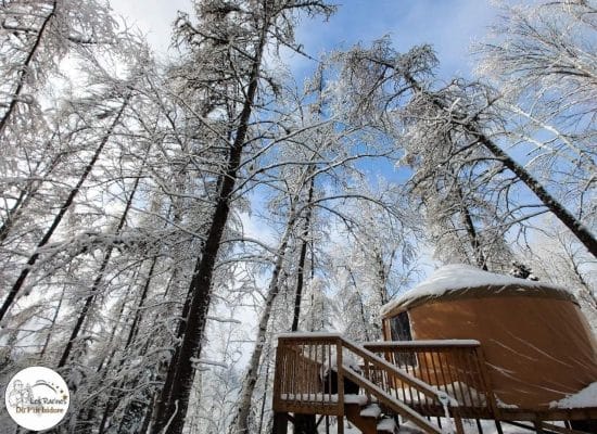 Les Racines du p’tit Isidore propose des yourtes, douillettes et bien équipées ou des chalets pensés pour conjuguer nature et confort. Ce qui rend l’adresse particulièrement pertinente en hiver : prêt de raquettes, traîneau, trois skis, et même la possibilité de louer une cabane à pêche.