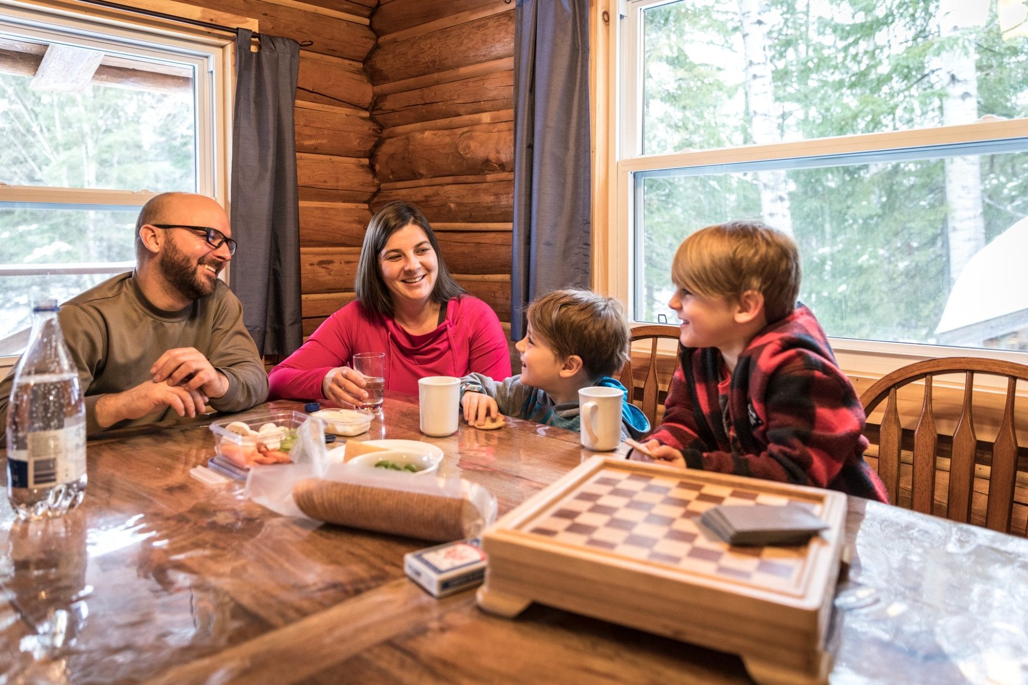 Si vous avez envie d’un hiver plus sauvage — mais sans renoncer au confort — la location de chalets au parc national d’Aiguebelle est une option qui complète parfaitement une escapade à Rouyn-Noranda. Ici, on a cette impression d’être “ailleurs” sans aller loin. Envie d’une nuit au cœur du parc? Vous pouvez louer l’un des chalets aux noms étonnamment poétiques — La Puce d’eau, Le Vice-Roi, Le Monarque ou Le Collembole. Et pour occuper les journées, le parc se prête naturellement aux sorties en raquettes.