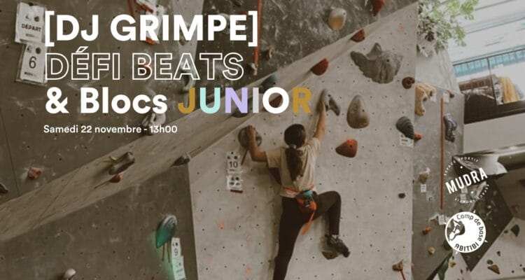 Vous êtes invités à rejoindre la fête lors de notre événement DJ Grimpe et Compétition d’Escalade Junior! Profitez d’une ambiance dynamique et de beats entraînants fournis par notre DJ tout en encourageant les jeunes talents de l’escalade lors de cette compétition excitante! Les jeunes grimpeurs auront l’opportunité de démontrer leurs compétences et de se mesurer aux autres dans une ambiance amicale et stimulante.
