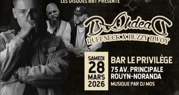 Spectacle musical de Doohdead, Ruffneck et Buzzy Bwoy. Animé par DJ Mos. Présenté par les Disques BBT.