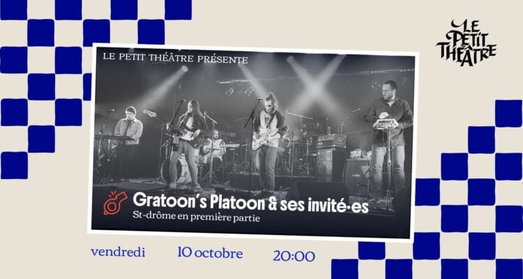 Le Petit Théâtre du Vieux Noranda vous présente Gratoon’s Platoon, un groupe funk-pop-alternatif qui propose un répertoire électrifiant, tantôt instrumental, tantôt porté par la voix.