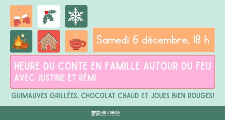 Venez profiter d’un moment chaleureux en plein air pour écouter des contes de Noël avec Justine Desrosiers et Rémi Boucher!